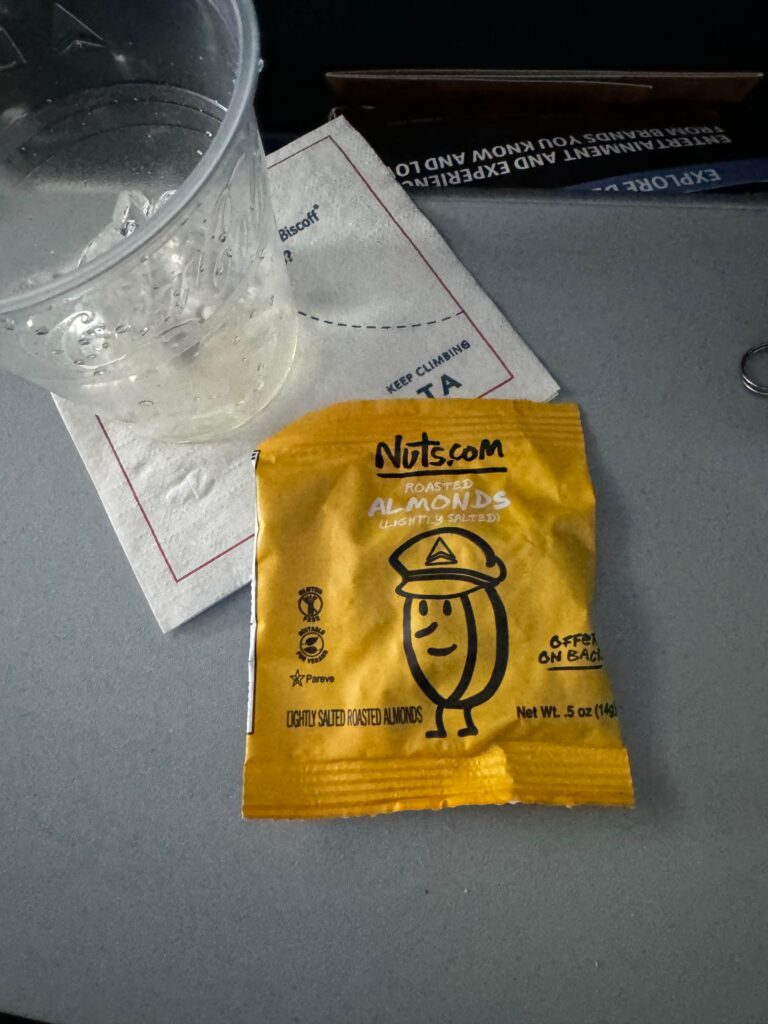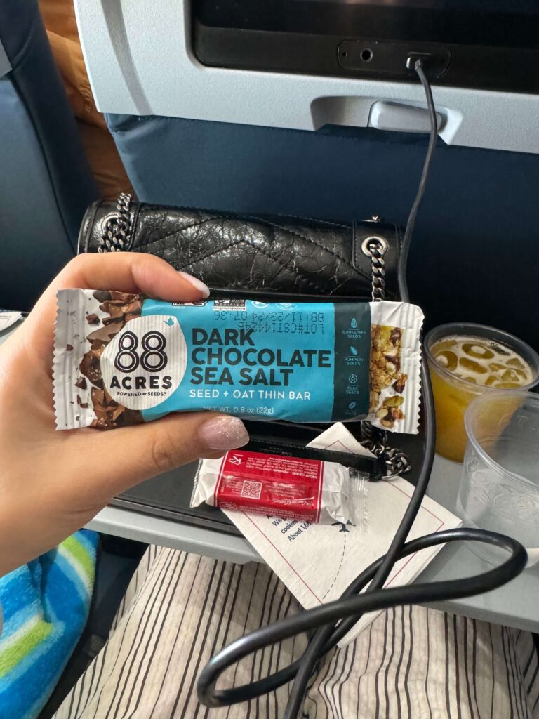 • Snacks: Two rounds of snack service – options included chips, nut bars, and chocolate