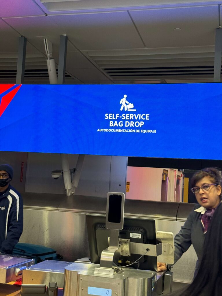 1. Head to the self-service check-in kiosk near the Delta check-in area